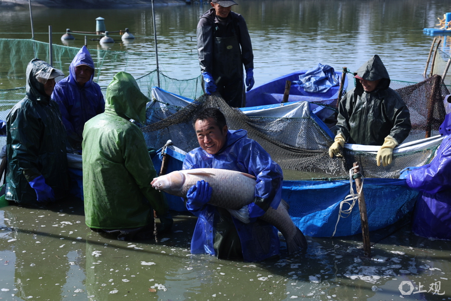 作为上海知名“养鱼大王”,高伟华基地出品的“四大家鱼”颇为畅销。如今年鱼旺销季来临,大批捕鱼都用上吊车,五六十斤重的乌青也不罕见。