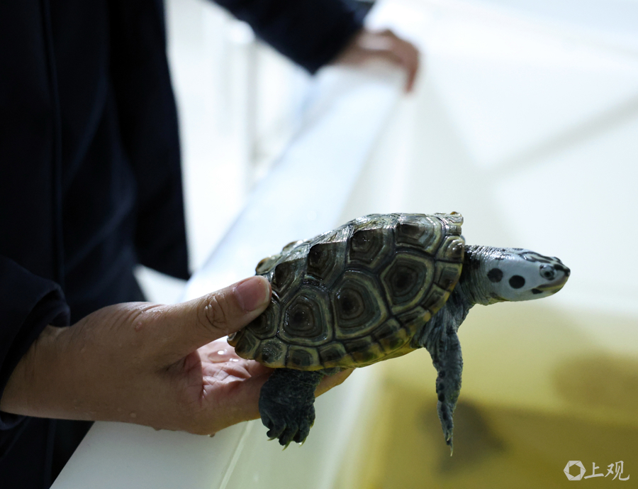 联腾观赏鱼中心负责人朱夏旭养殖的皇冠钻纹龟,市场价超五万元一只。